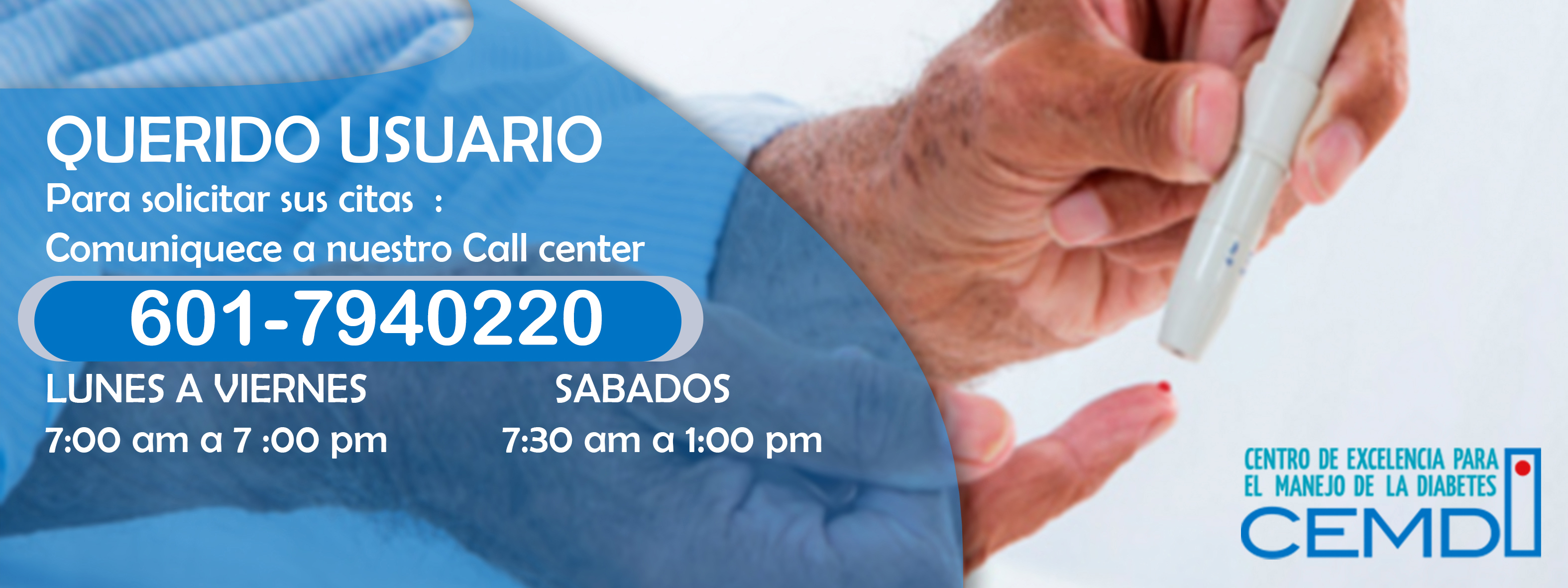 En CEMDI S.A.S, nuestros servicios están dirigidos a mejorar la salud de nuestros pacientes; somos su apoyo, los acompañamos y enseñamos a manejar la diabetes para que su vida sea cada día mejor.